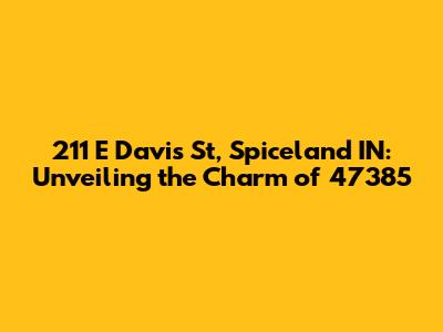 Hey there, real estate enthusiasts! Let's dive deep into the fascinating world of 211 E Davis St, Spiceland, IN, and uncover everything you need to know about this address, nestled in the heart of the 47385 zip code. This isn't just about a house; it's about a community, a lifestyle, and a potential investment. So, grab a coffee, get comfy, and let's explore this gem together! We'll cover everything from property details to what makes this location so special. Get ready to be informed and maybe even a little inspired!