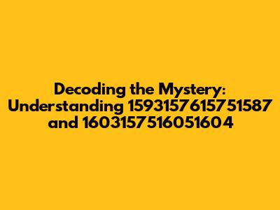 Alright guys, let's dive into something a bit quirky today. We're going to explore what might seem like random strings of numbers: 1593157615751587 and 1603157516051604. Now, before your eyes glaze over, stick with me! These numbers, while seemingly arbitrary, can actually hold hidden meanings or serve specific purposes depending on the context. Our mission is to unravel some potential explanations and uses for these numeric sequences.