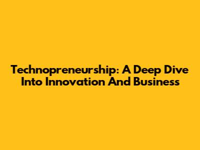 Technopreneurship: A Deep Dive Into Innovation And Business