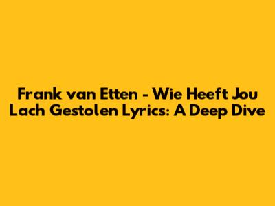 Hey guys, have you ever stumbled upon a song that just hits you right in the feels? A tune that, even if you don't know the whole story, the melody and the raw emotion in the vocals speak volumes? Well, today we're diving deep into the lyrics of "Wie Heeft Jou Lach Gestolen" by Frank van Etten. This track isn't just a song; it's an emotional journey, a story whispered in Dutch that has resonated with so many. We're going to break down the lyrics, explore the feelings they evoke, and try to understand the heart-wrenching narrative Frank van Etten is sharing with us. So grab a cuppa, get comfy, and let's unravel the meaning behind this powerful song together. It’s all about connection, loss, and that lingering question of what could have been. We’ll be looking at the specific words, the phrasing, and how they contribute to the overall impact. It’s going to be an emotional ride, so buckle up!