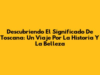 Descubriendo El Significado De Toscana: Un Viaje Por La Historia Y La Belleza