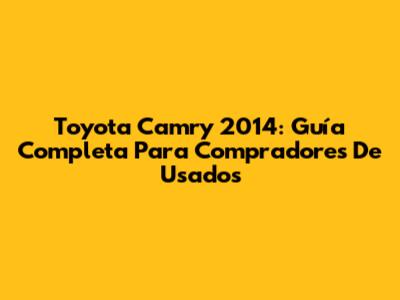 Toyota Camry 2014: Guía Completa Para Compradores De Usados