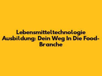Lebensmitteltechnologie Ausbildung: Dein Weg In Die Food-Branche