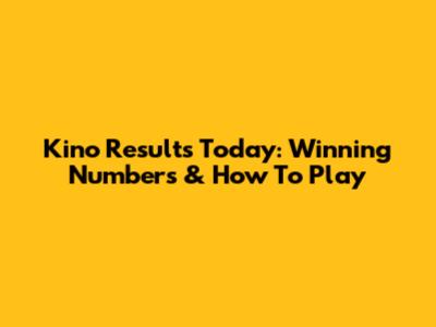 Kino Results Today: Winning Numbers & How To Play