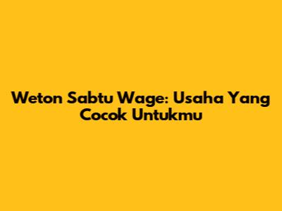 Weton Sabtu Wage: Usaha Yang Cocok Untukmu