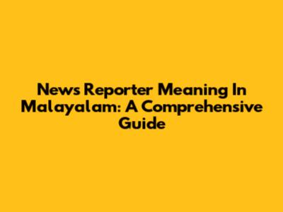 News Reporter Meaning In Malayalam: A Comprehensive Guide