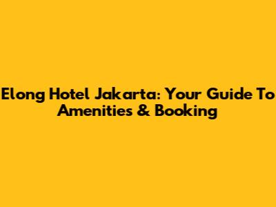Elong Hotel Jakarta: Your Guide To Amenities & Booking
